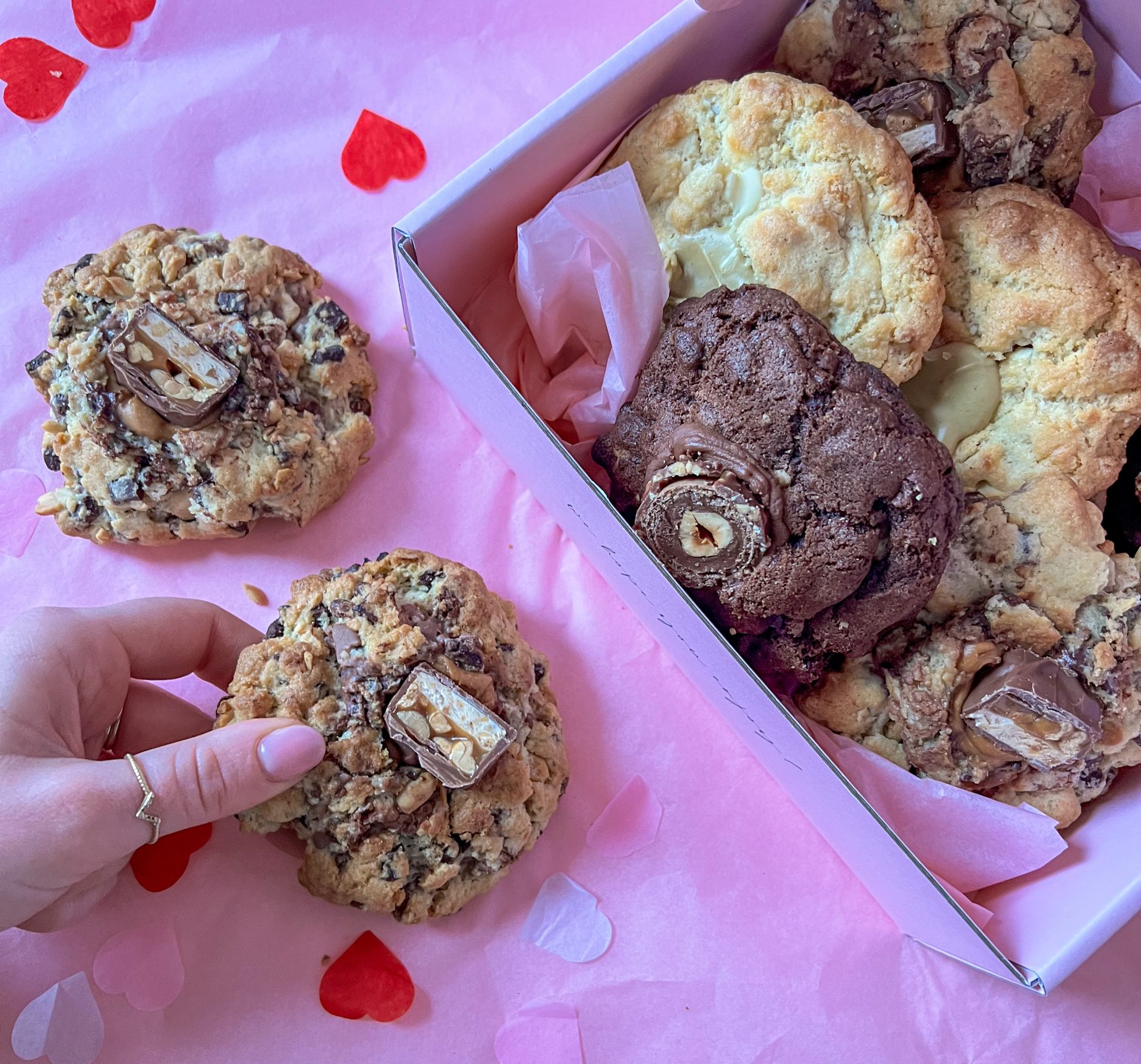 A rich Snickers cookie, an indulgent Ferrero Rocher cookie, and a perfectly balanced pistachio cookie. Packed with nutty, chocolatey goodness and baked to impress, it’s the ultimate sweet treat for someone you’re truly nuts about. 💕🍪