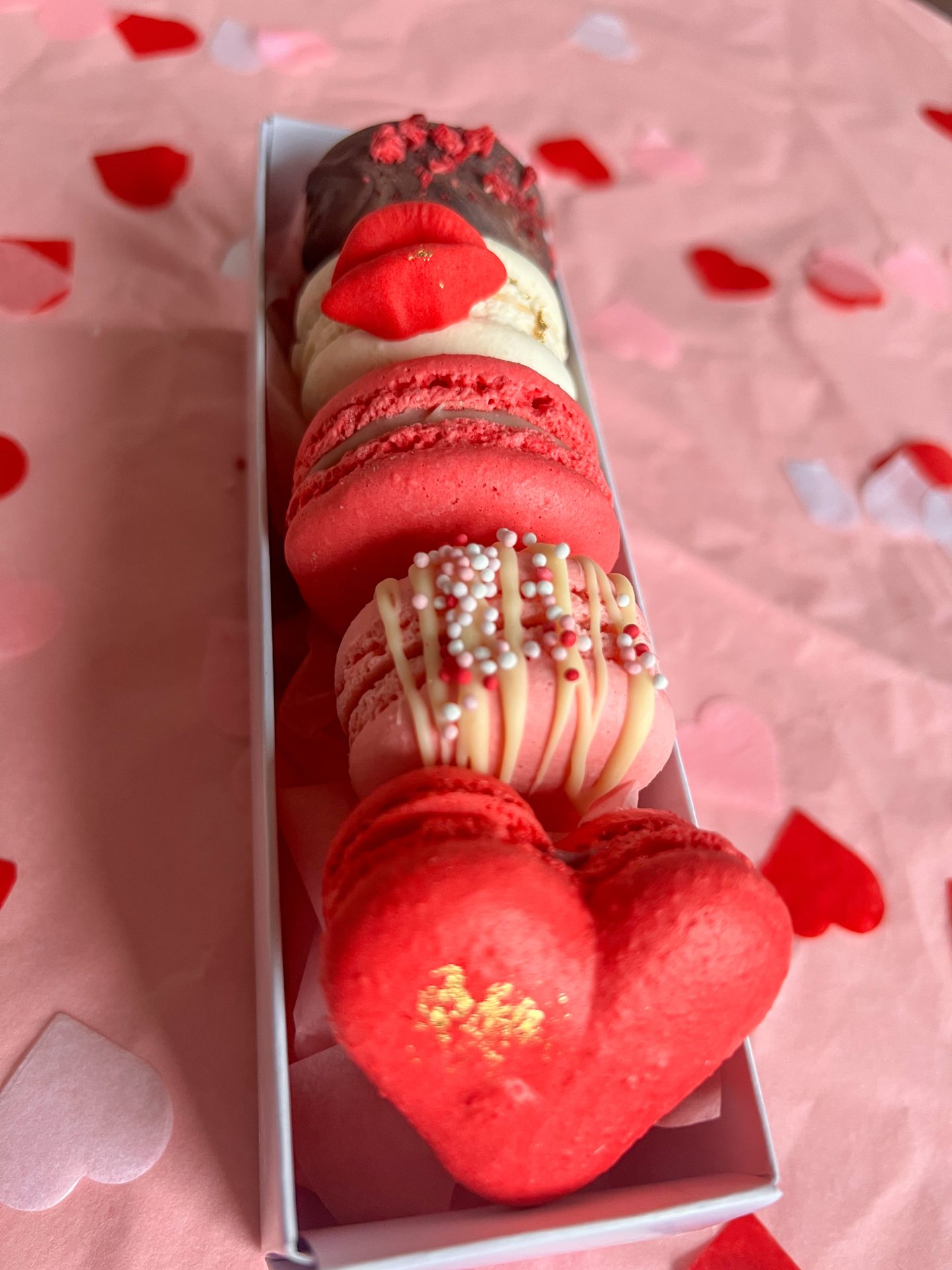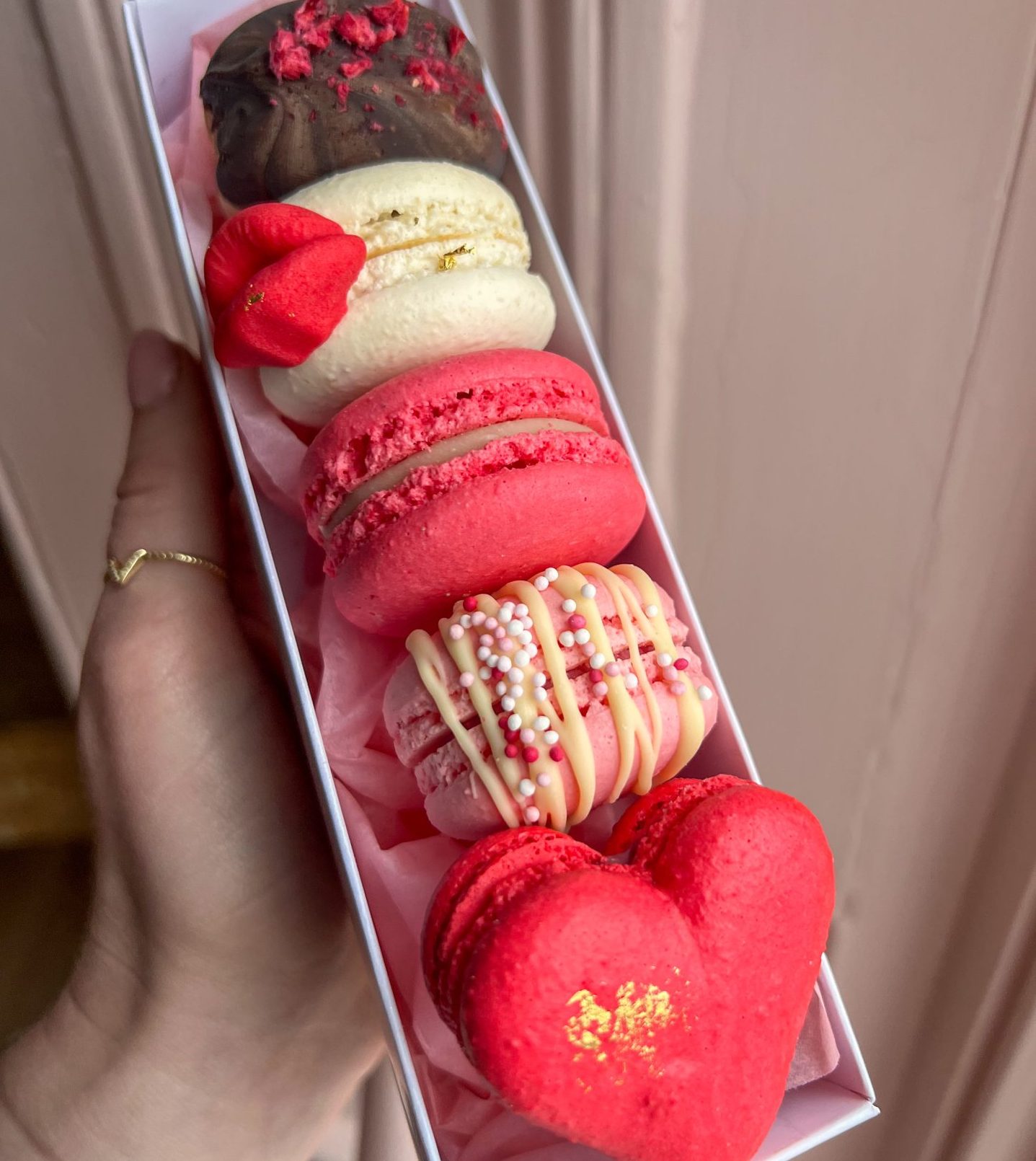 Our handcrafted macarons come in 5 delicious flavours: Chocolate, Raspberry, Strawberry, Vanilla & Cherry. Delicate, designed with love, and perfect for sharing this Valentine’s.